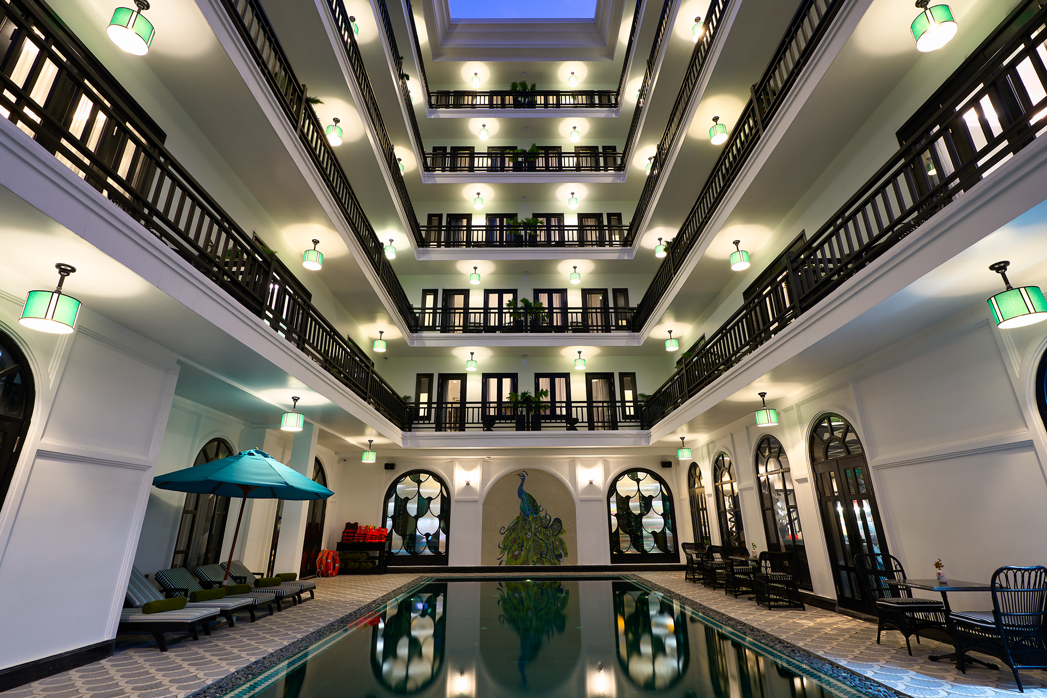 🎨 Kiến trúc “Chim Công” độc bản: Lấy cảm hứng từ vẻ đẹp kiêu sa của loài chim công, mọi ngóc ngách tại khách sạn đều là một tác phẩm nghệ thuật với tông màu xanh lục bảo và vàng kim rực rỡ — góc nào cũng là “background” cực xịn cho những bức ảnh triệu like!