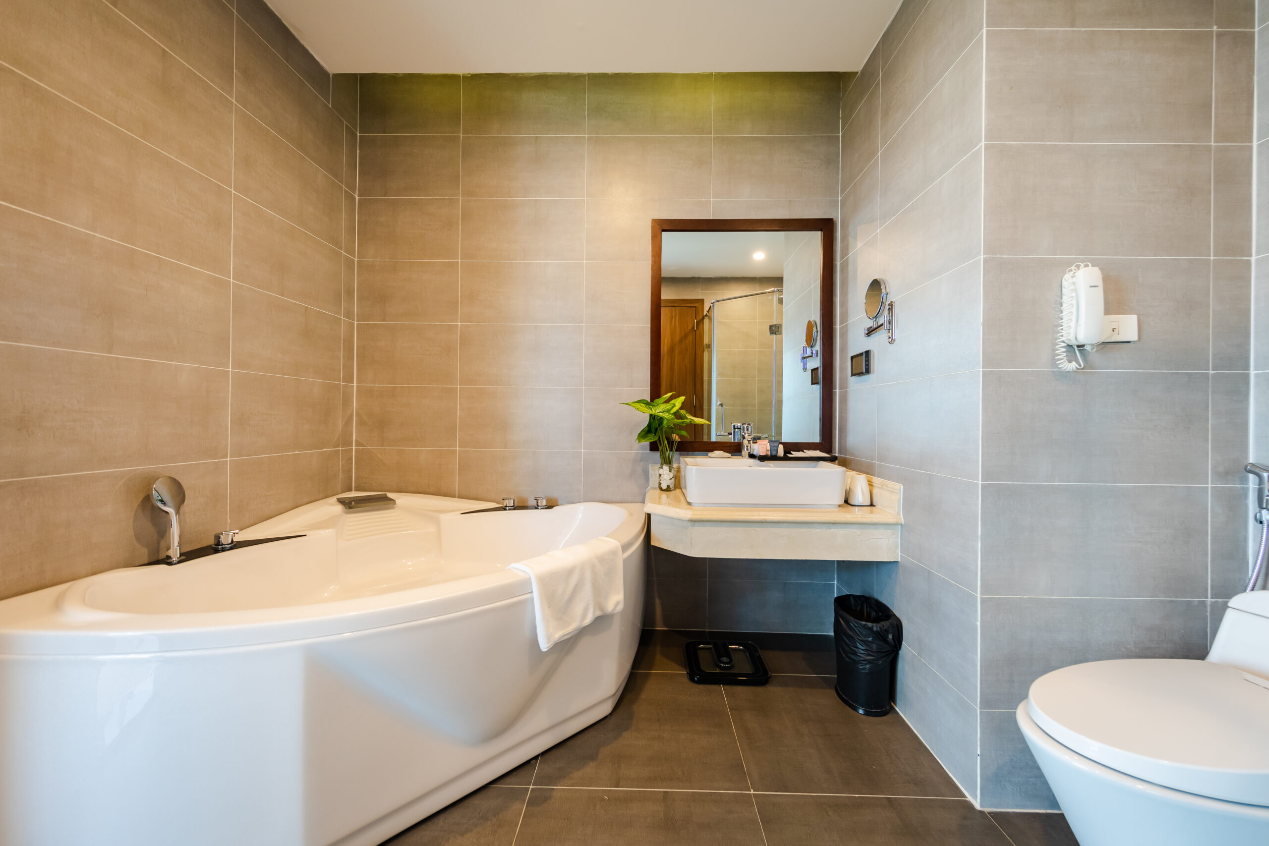 • Deluxe King/Twin (30m²): Không gian rộng rãi, trang thiết bị gỗ trầm ấm, bồn tắm nằm cực chill.