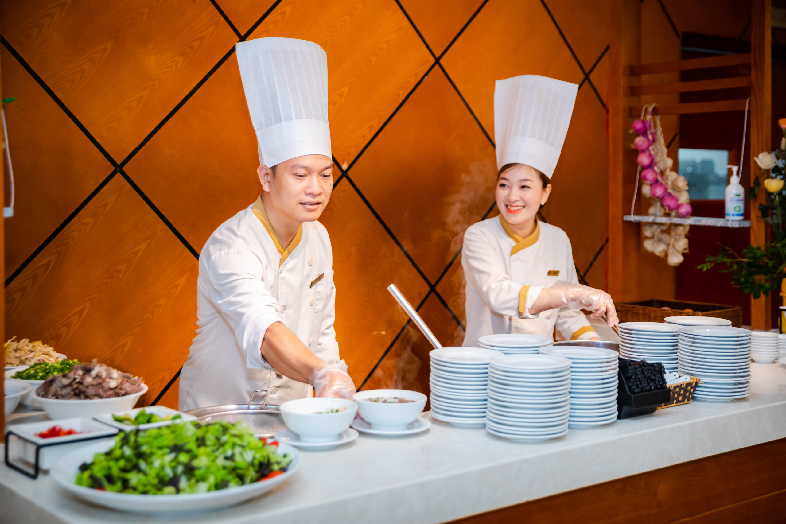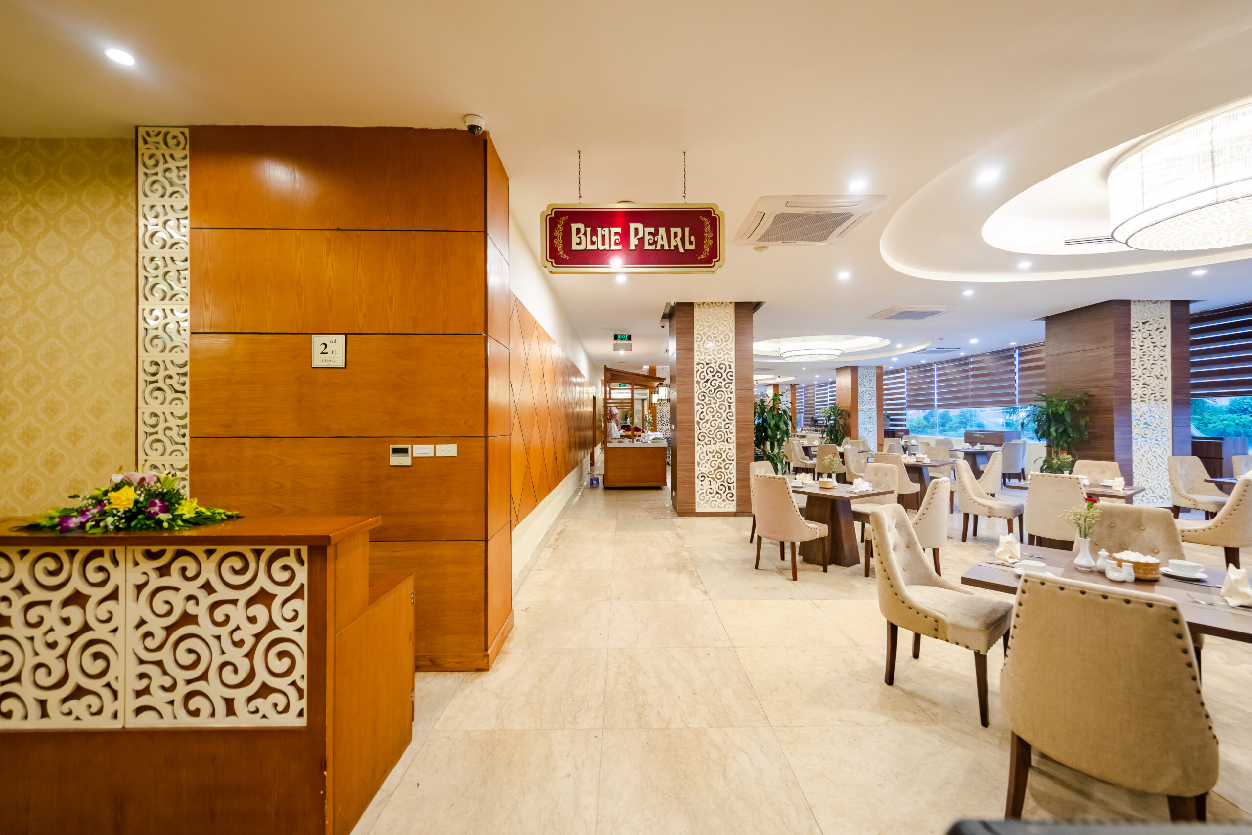 • Nhà hàng Blue Pearl: Nơi bạn được thưởng thức bữa sáng buffet đa dạng. Đặc biệt là các món hải sản tươi sống được chế biến theo phong cách đặc sắc của vùng biển Quảng Ninh.