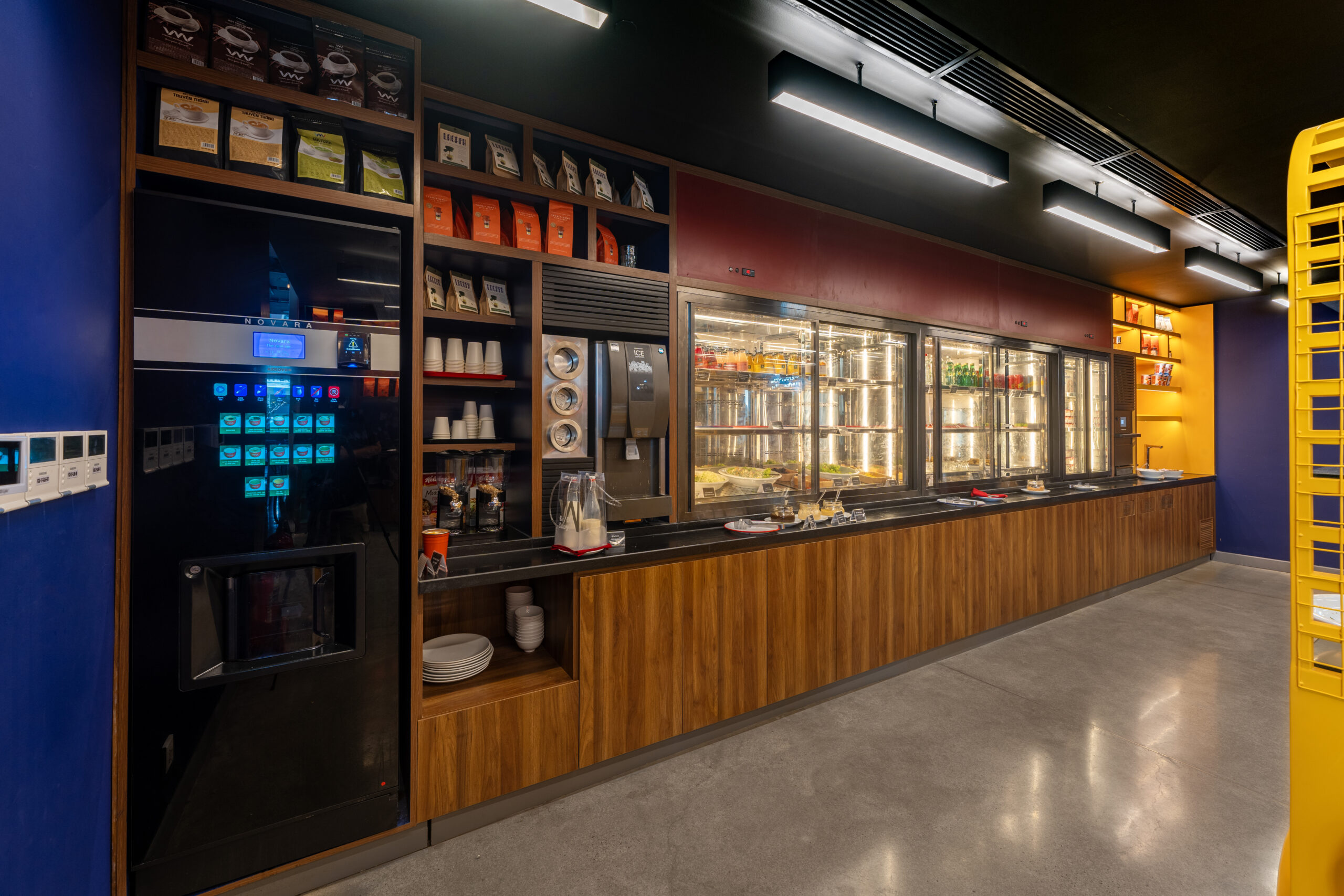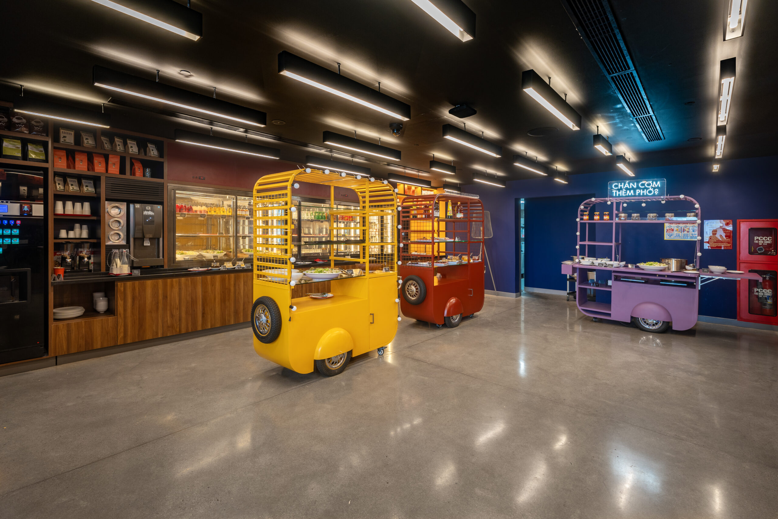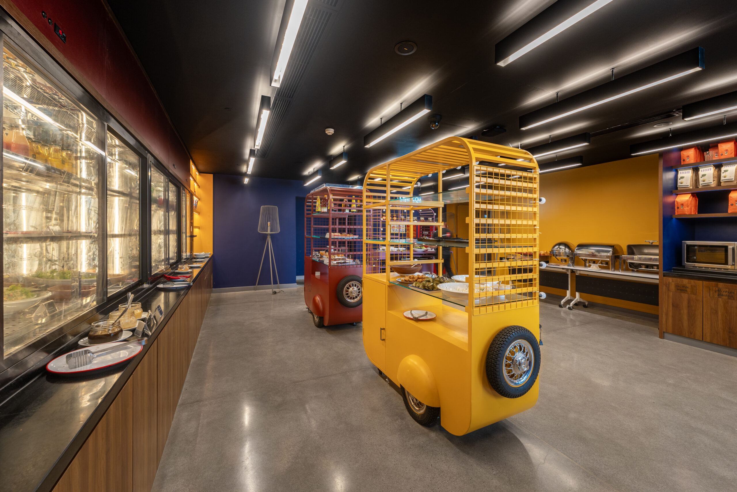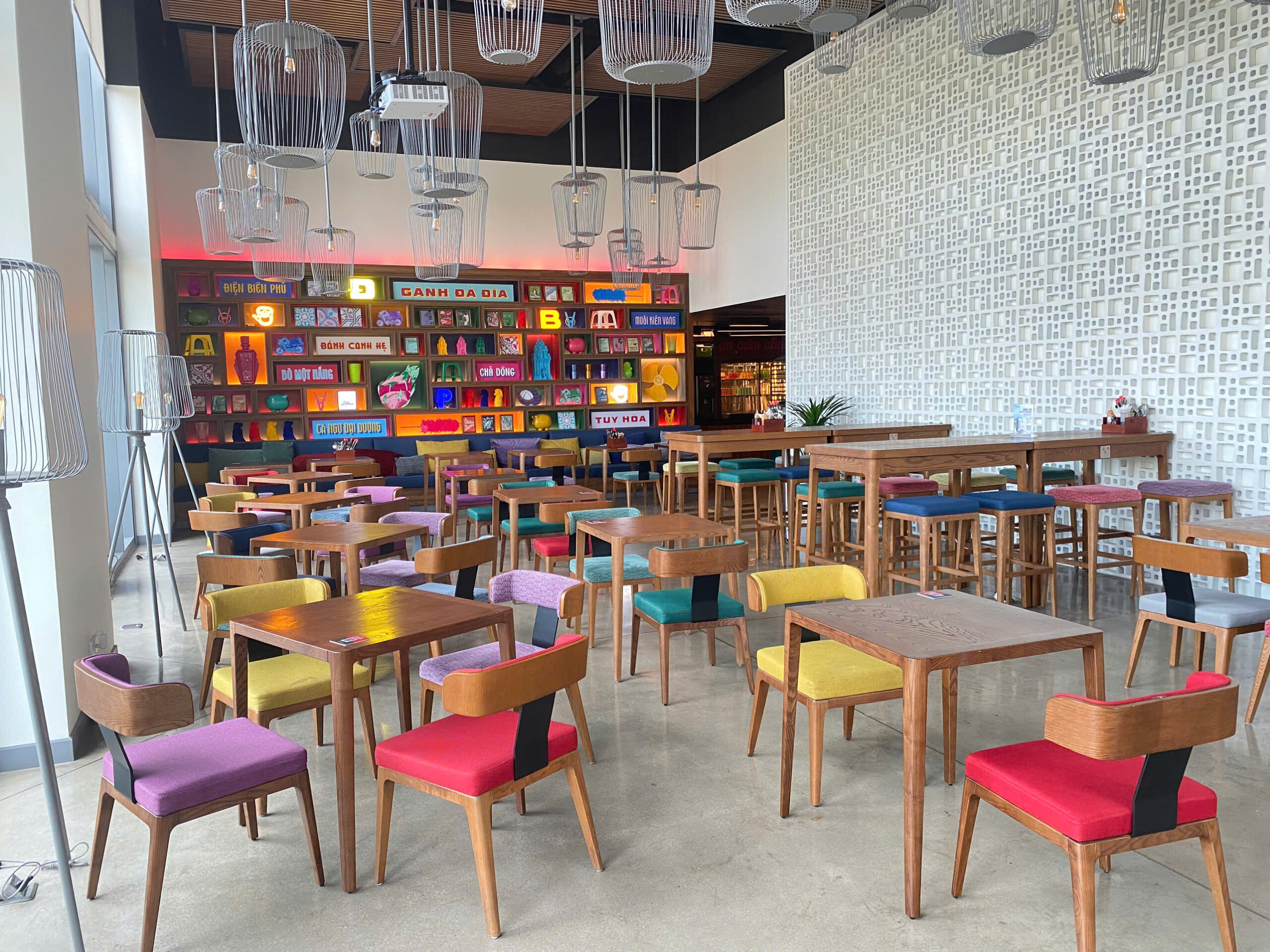 Quên đi những sảnh chờ truyền thống cứng nhắc! Vừa bước vào Wink, khách sẽ bị ấn tượng ngay bởi không gian đậm chất nghệ thuật với những gam màu nóng bỏng (cam, vàng, hồng) cực kỳ “Instagrammable”.