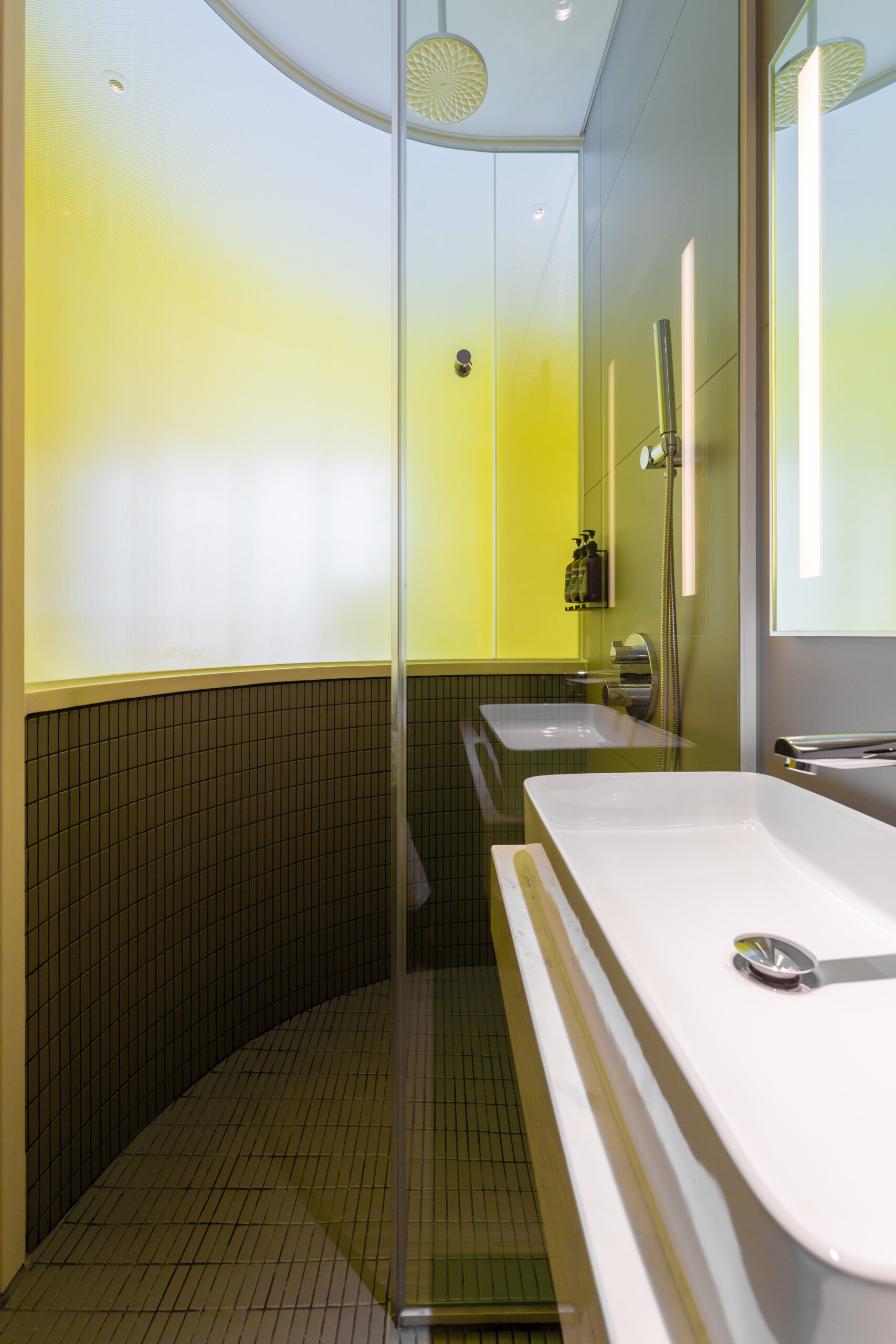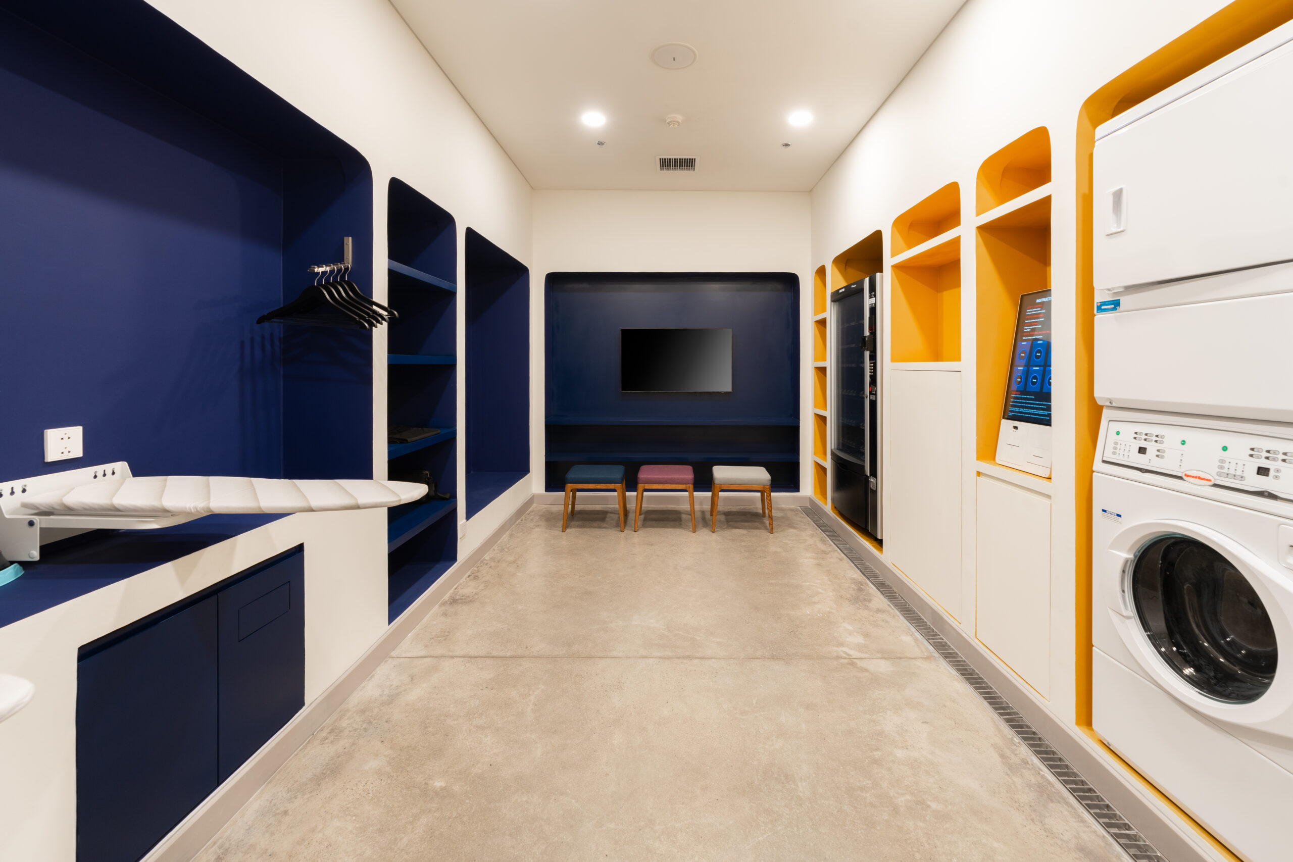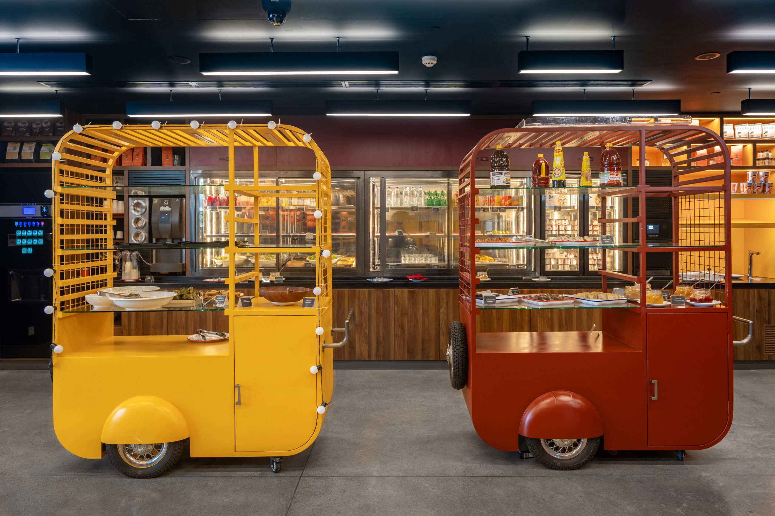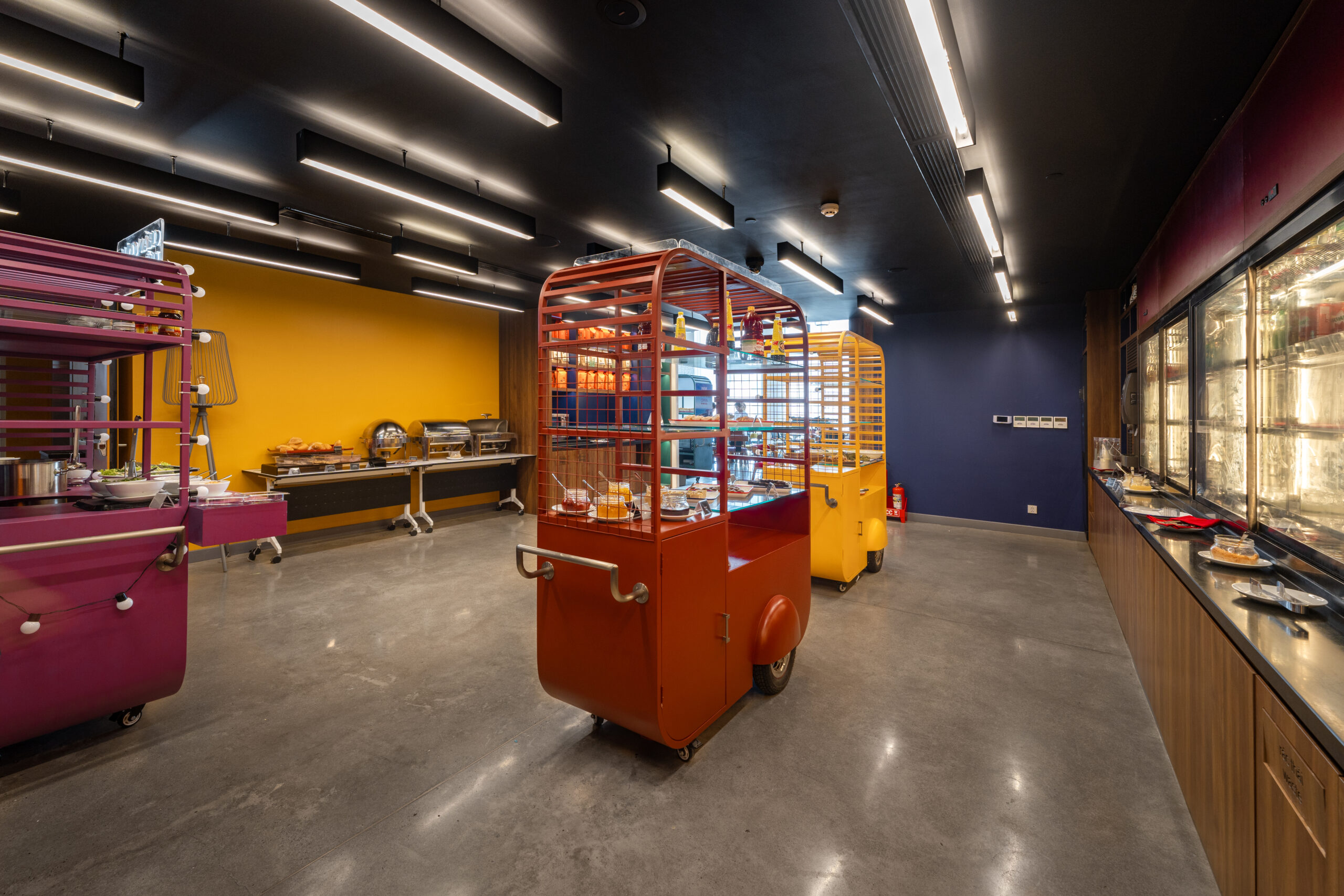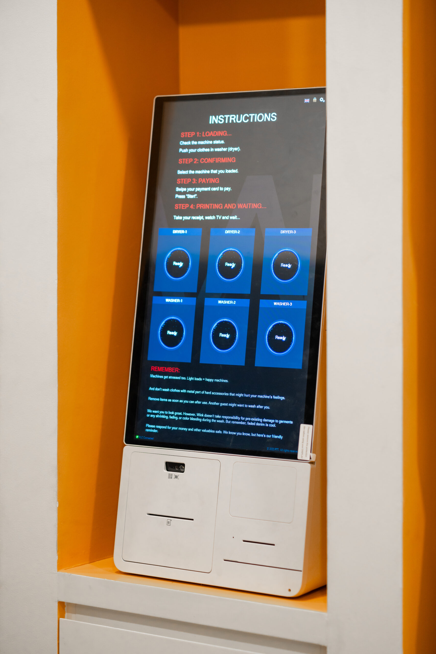 Quên đi những sảnh chờ truyền thống cứng nhắc! Vừa bước vào Wink, khách sẽ bị ấn tượng ngay bởi không gian đậm chất nghệ thuật với những gam màu nóng bỏng (cam, vàng, hồng) cực kỳ “Instagrammable”.
