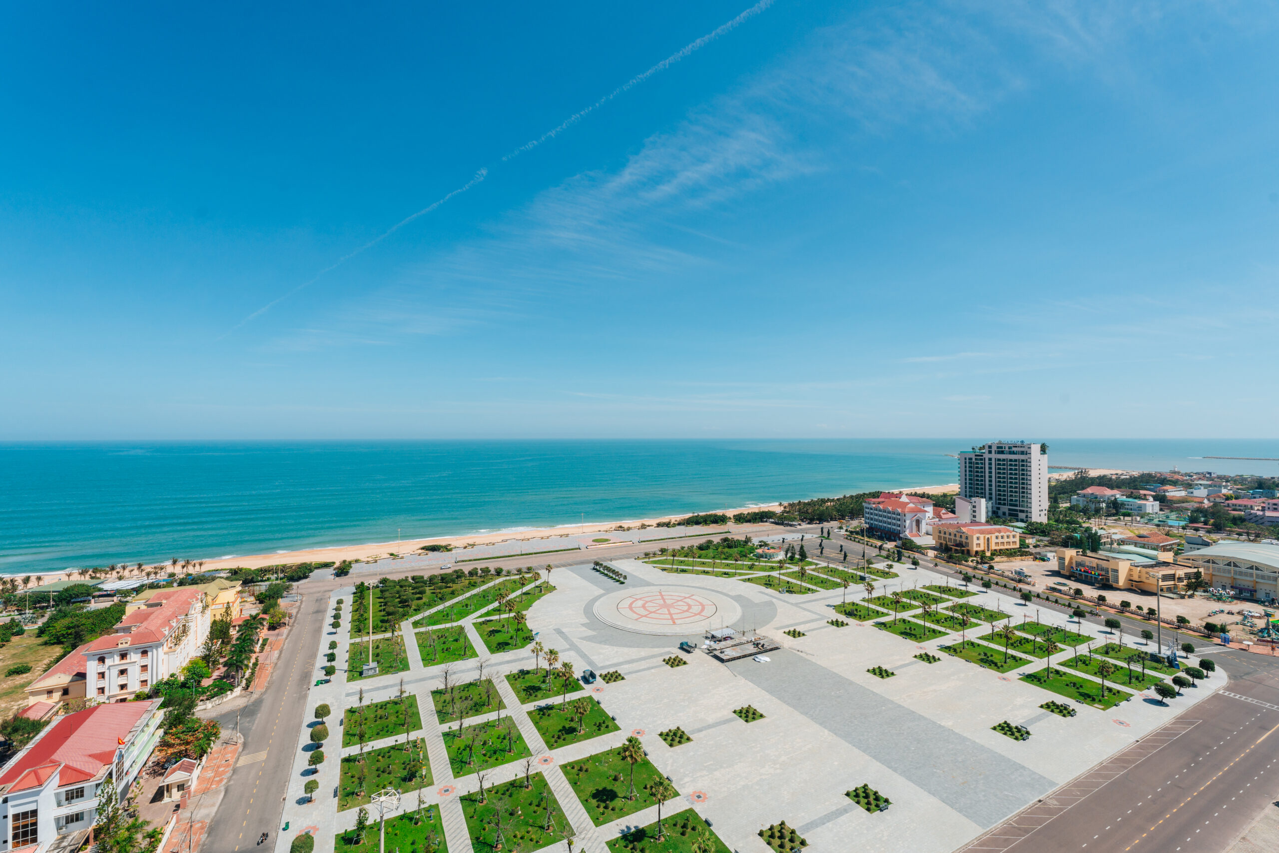 Hãy tưởng tượng sáng thức dậy, anh chỉ cần nhấn nút mở rèm, cả một khoảng trời xanh ngắt của biển Tuy Hòa ùa vào phòng qua lớp kính chạm trần.